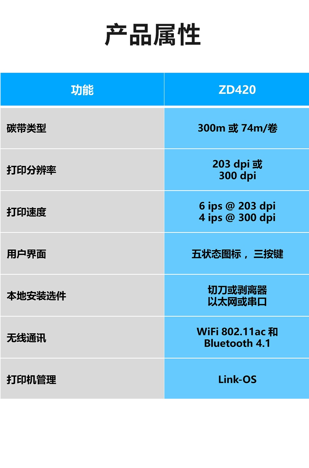 ZEBRA ZD420桌面打印机,可提供客户现在和未来所需的功能、灵活性、可靠性和安全性。直观的新用户界面,轻松操作,消除打印机状态的猜测,并具有用于增加功能和控制的三按钮用户界面。配备大容量,可安装74m-300m的碳带。USB、串口、以太网口多种接口选择,连接到任何现有有线和无线网络或直接连接到PC。